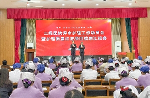 為全面啟動(dòng)三級(jí)醫(yī)院評(píng)審護(hù)理相關(guān)任務(wù),同時(shí)集中展示護(hù)理質(zhì)量改進(jìn)項(xiàng)目的階段成果,進(jìn)一步激發(fā)護(hù)理團(tuán)隊(duì)的創(chuàng)新活力與執(zhí)行力,3月19日下午,我院舉辦三級(jí)醫(yī)院評(píng)審護(hù)理工作動(dòng)員會(huì)暨護(hù)理質(zhì)量改進(jìn)項(xiàng)目成果匯報(bào)賽。院黨委副書(shū)記、院長(zhǎng)范警華,黨委委員、紀(jì)委書(shū)記李景峰,黨委委員、副院長(zhǎng)程廣舟出席會(huì)議。全體護(hù)士長(zhǎng)及護(hù)理骨干參加會(huì)