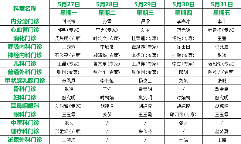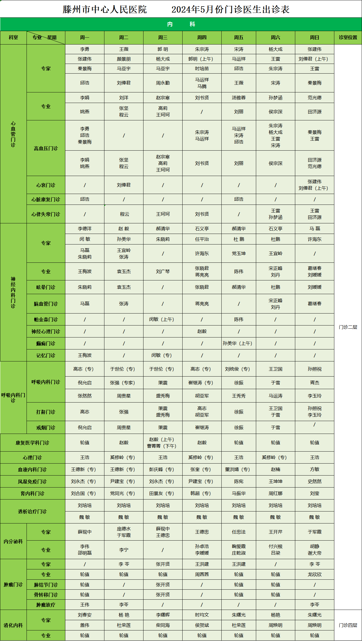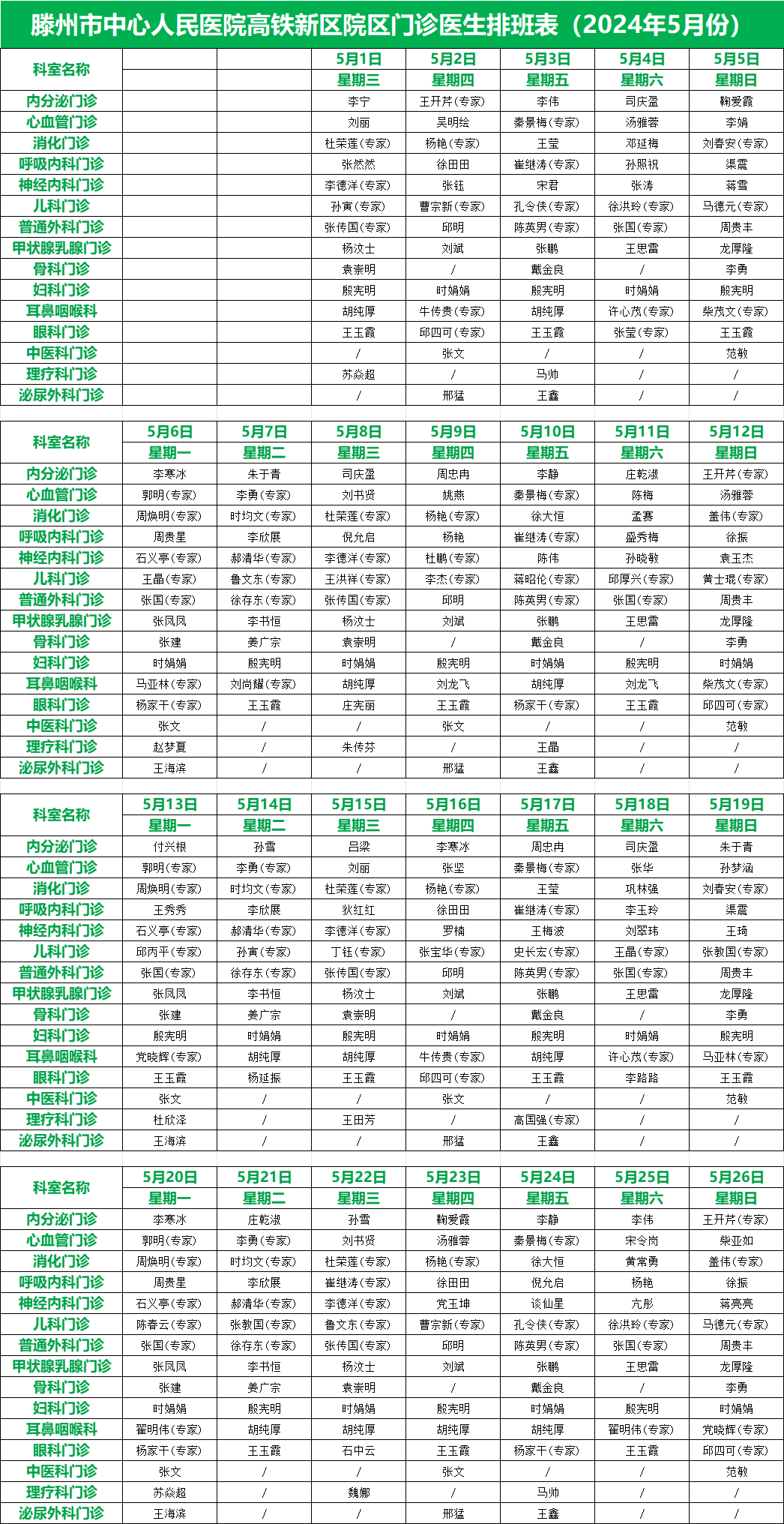 關(guān)注 | 滕州市中心人民醫(yī)院5月份專家、專業(yè)門診排班表