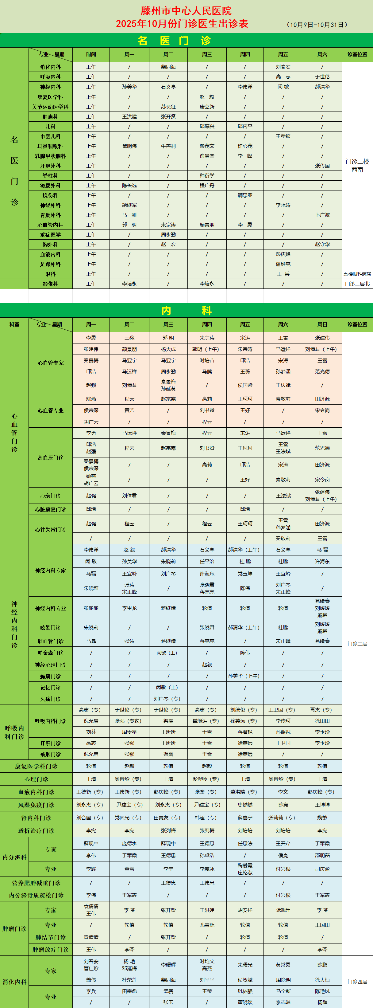 為了提供優質的醫療服務,我們為您發布最新的門診醫生坐診信息,便于您根據自身情況,選擇合適的醫生、合適的時間就診,希望能為您的就診帶來便利。