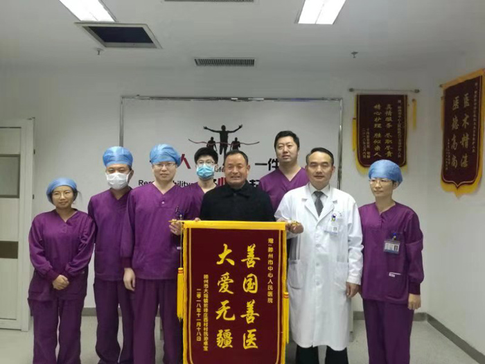 患者骨盆骨折、雙下肢骨折、下肢持續骨牽引、腹腔多根引流管,護理任務很重。治療期間,為了避免壓瘡、脫管和靜脈血栓的風險,醫護人員遵守常規合理鎮靜,應用防血栓措施,定時翻身,杜絕一切影響患者病情的行為。患者留置了胃管、鼻腸管、氣管插管、中心靜脈置管,同時腹部留有多個持續沖洗引流管,護士們嚴格無菌操作,每日不斷為患者精心持續沖洗腹腔。大到患者的治療小到患者的基本生活需要,我們的醫護人員都予以了無微不至的關心、關懷。為讓患者樹立康復的信心,護士們每日進行心理護理、生活照理,不斷為患者翻身、排痰,自發地為患者買飯,每日把可口的飯菜送到患者床邊。患者行雙下肢手術后,我們醫護人員又擔負起了康復的任務,管床醫師、護士每日對患者精心康復訓練,宋方強主任自費購買了助步器、拐杖等器械幫助患者康復。經過ICU全體醫護人員的精心照護,患者住院5個月,終于康復出院。