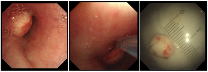 患者左主支氣管遠端見結節(jié)狀白色腫物,表面上有少許表淺血管顯露,基底較寬,堵塞管腔約70%,予以高頻電套扎切除,少許出血,給與局部噴灑腎上腺素溶液止血,標本送病理。2月16日病理結果示:肺錯構瘤。患者于2月16日出院,醫(yī)護人員就復診問題給予其詳細的指導。