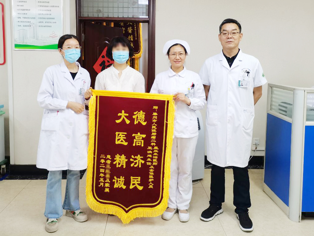 近日,兩名患者家屬將一面“醫(yī)術精湛 仁心仁術”的錦旗送至我院EICU,以感謝全科醫(yī)護人員的精心救治。患者,男,72歲,因誤服“樂果”3小時入院,后因病情加重轉入EICU。患者神志清,精神差,給予高流量氧療,并積極對癥治療。患者年齡大,體質差,在EICU醫(yī)護團隊細心耐心的治療護理下,并發(fā)癥得到有效控制,病情快速緩解。因EICU限制家屬陪護,治療期間,患者切實感受到了醫(yī)護人員的認真負責,和像家人一樣無微不至的關懷照顧。出院前,患者家屬特送來錦旗表示感謝!