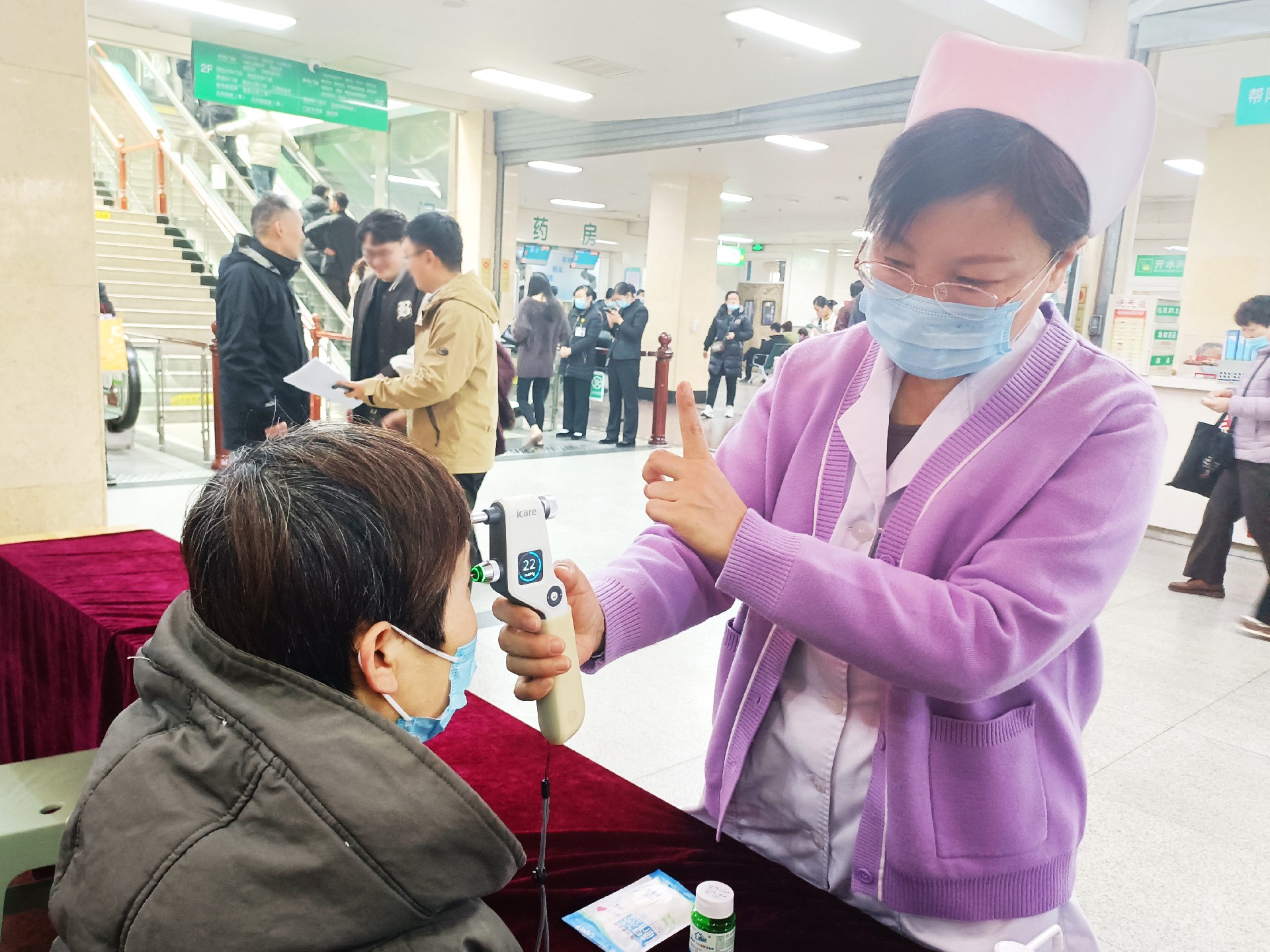3月9日-15日是第18個“世界青光眼周”,今年的主題為“AI協(xié)同護航,共防青光眼盲”。為提高公眾對青光眼的認(rèn)知,增強眼健康意識,3月15日,我院眼科一病區(qū)高峰副主任帶領(lǐng)醫(yī)護團隊在門診一樓大廳舉辦義診活動。