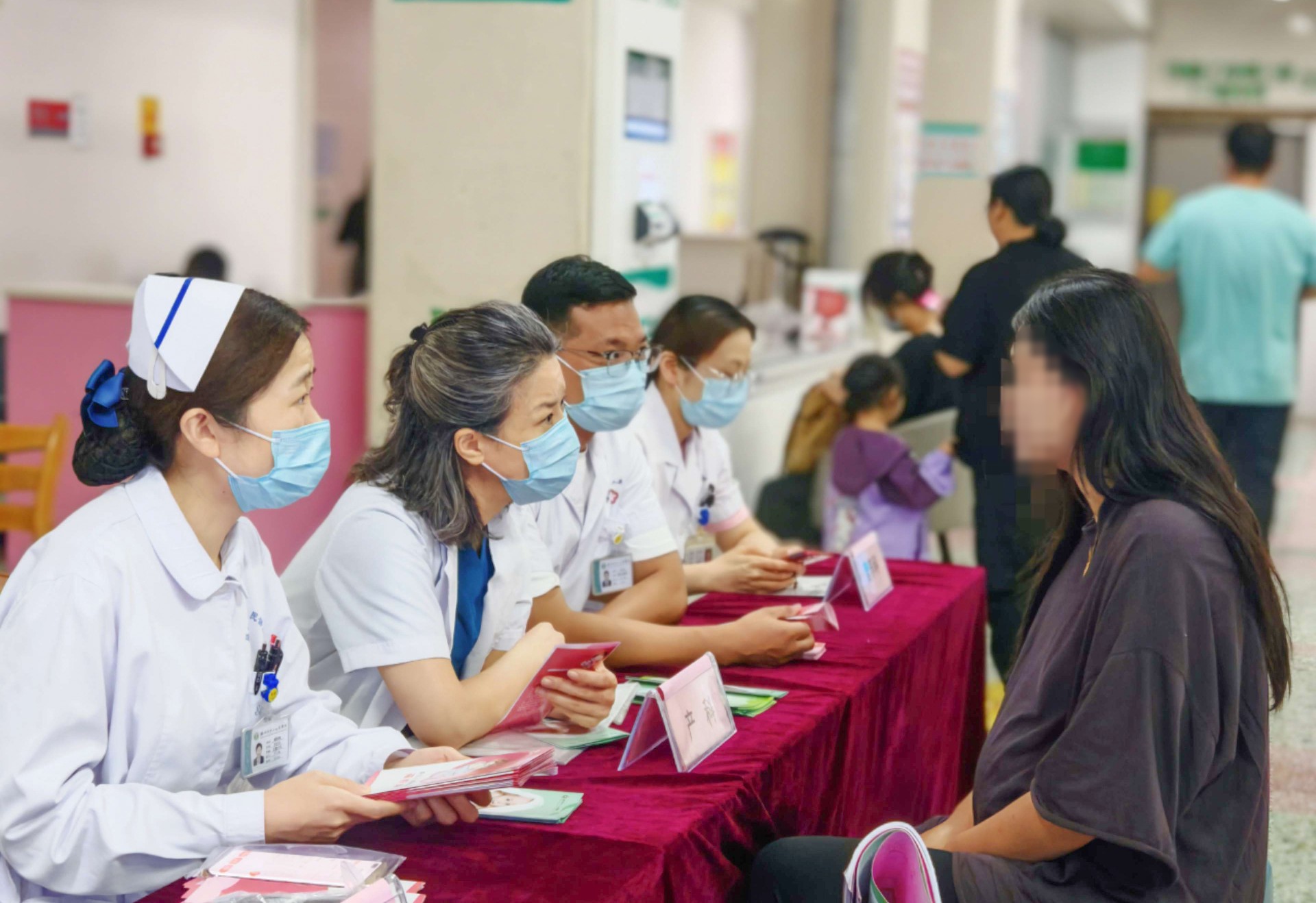 活動現場,咨詢者絡繹不絕。產科專家針對孕前、孕期的產前篩查、遺傳咨詢、圍產期保健等孕產婦家庭關心的問題,詳細拆解孕產全周期要點;營養科專家針對不同孕期需求及常見誤區給出方案;兒科專家聚焦新生兒篩查與嬰幼兒發育監測問題進行答疑解惑?,F場還通過展板和發放科普資料進行宣傳出生缺陷防治知識,同時免費提供血壓、血糖檢測等服務。
