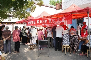 9月7日,我院醫技黨總支醫護人員在黨委委員、監察室主任、醫技黨總支書記李文的帶領下,到南沙河鎮開展“健康棗莊服務百姓惠民義診”活動。南沙河鎮副鎮長滿蘇寧參加活動。活動現場,志愿者義診專家通過懸掛宣傳橫幅、發放宣傳資料、設置問診臺、血壓檢測臺、血糖檢測臺、心電圖檢查區等,為群眾提供醫療服務。專家為前