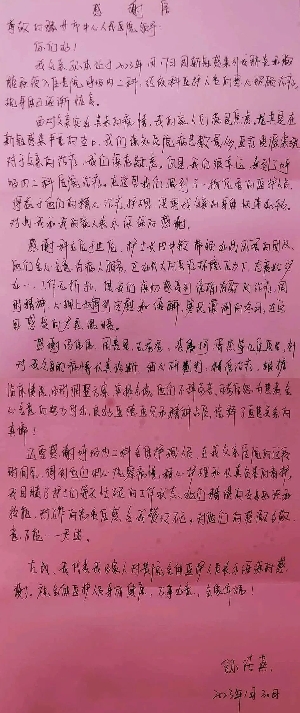 @孫延奇醫(yī)生,有封感謝信請(qǐng)查收