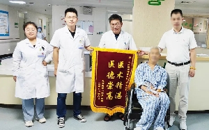 7月7日,一位蛛網膜下腔出血康復出院的患者,將一面寫有“醫者仁心、妙手回春”的錦旗送到神經內四科病房。患者,男,48歲,因急性劇烈頭痛就診外院,診斷為“蛛網膜下腔出血”,為求進一步治療急來我院,急診經綠色通道收入病房。考慮到85%的自發性蛛網膜下腔出血由顱內動脈瘤破裂所致,隨時可能再次破裂出血,危及生命,