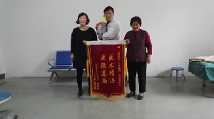 近日,我院創傷一科病區上演了溫馨的一幕:“我母親身體能恢復,多虧了醫生和護士的細心照顧”,倪先生一邊說著,一邊領著他95歲的老父親走過來,手里還拿著一面