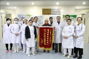 退休干部孔祥蘭,因患慢性支氣管炎在外院久治不愈,憋喘重,經過呼吸內一科高志主任醫師及甘艷護士長帶領的醫護團隊精心醫治 ,住院12天痊愈出院,特送錦旗一面,以