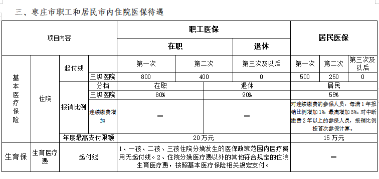 三、棗莊市職工和居民市內住院醫保待遇