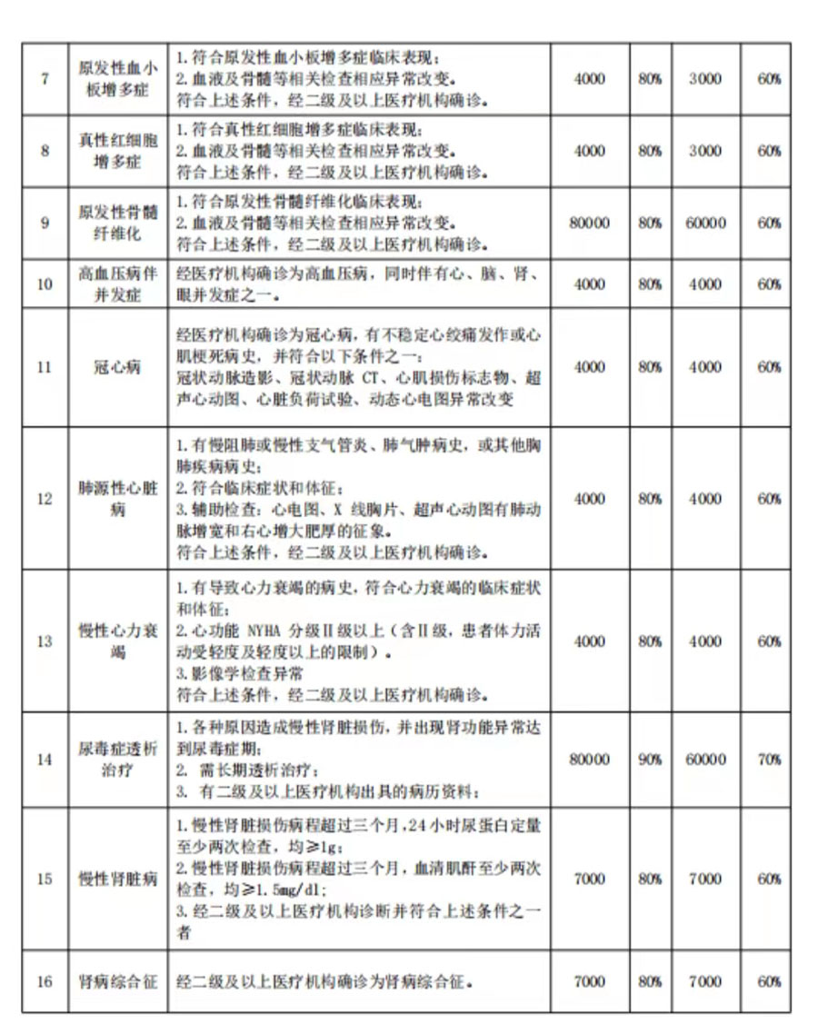 2.支付比例。參保職工惡性腫瘤的門診治療、白血病、組織或器官移植(抗排異治療)、尿毒癥透析治療等病種支付比例為90%,其余病種支付比例為80%;參保居民惡性腫瘤的門診治療、白血病、組織或器官移植(抗排異治療)、血友病等病種支付比例為70%,其余病種支付比例為60%。