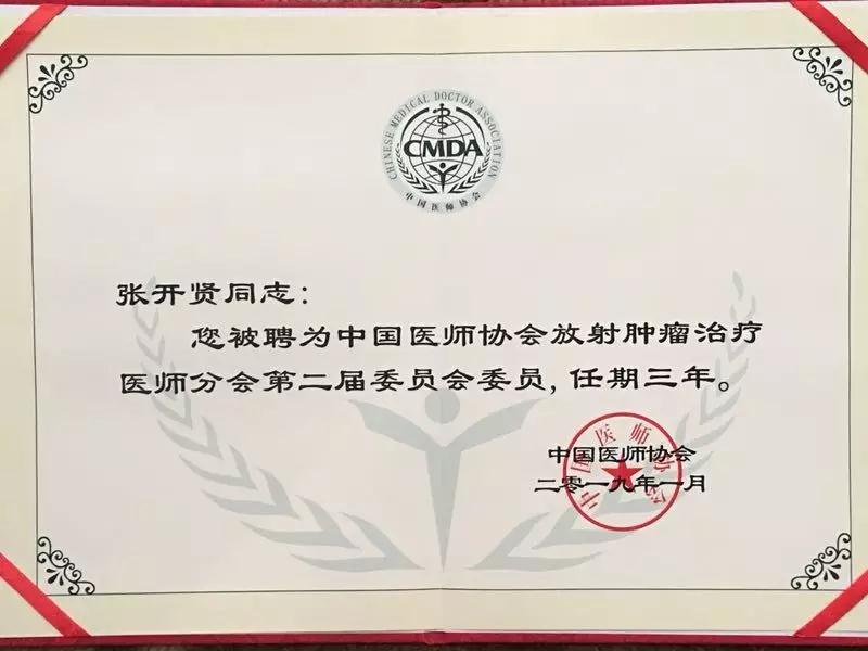 張開賢主任當(dāng)選中國醫(yī)師協(xié)會放射腫瘤治療醫(yī)師分會全國委員