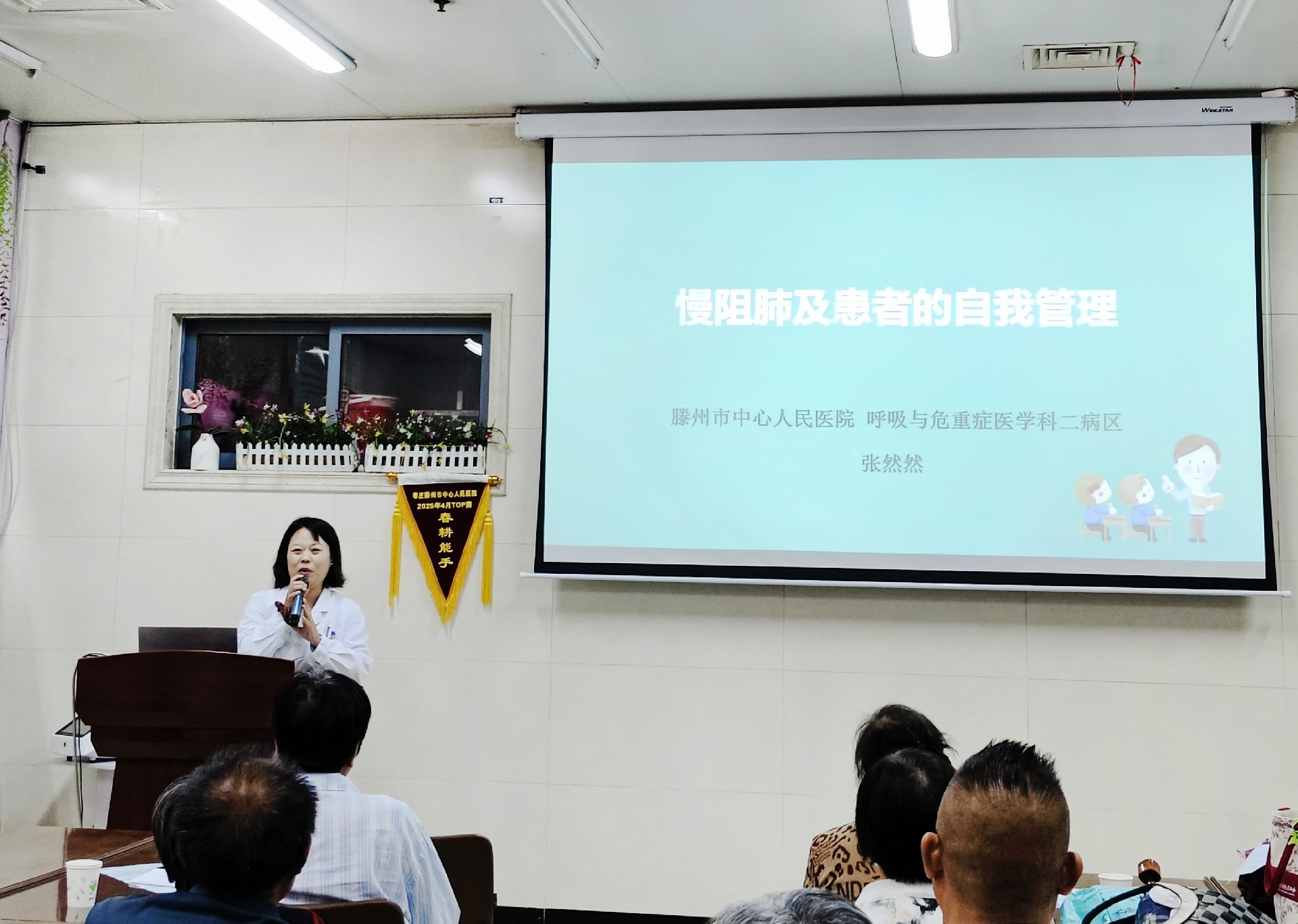 首先,護理部主任殷俠為講堂開講致辭,指出“健康管理是送給長者最好的禮物”。接下來,呼吸內科二病區張然然主治醫師結合多年臨床經驗,詳細講解慢性阻塞性肺病患者在急性期的治療,以及穩定期康復中的注意事項,手把手教授居家呼吸訓練、用藥監測等實用技能;心內科一病區主任時培苗以《冠心病的治療與預防》為主題,從日常飲食、運動到急救措施,為老年人梳理“護心秘籍”。