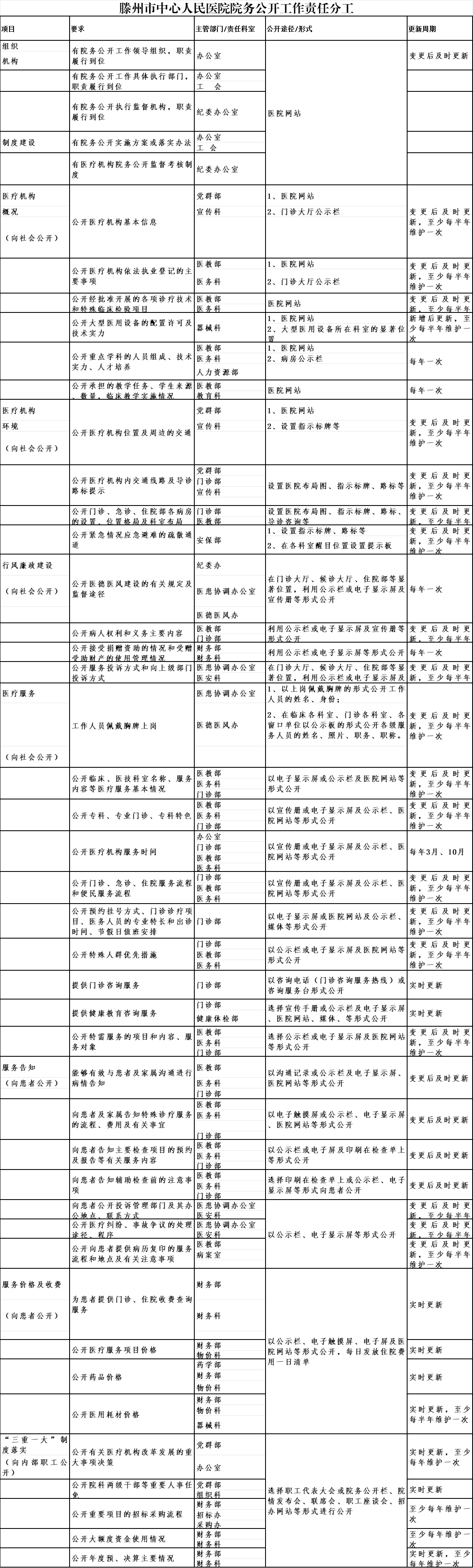 附件:滕州市中心人民醫院院務公開工作責任分工