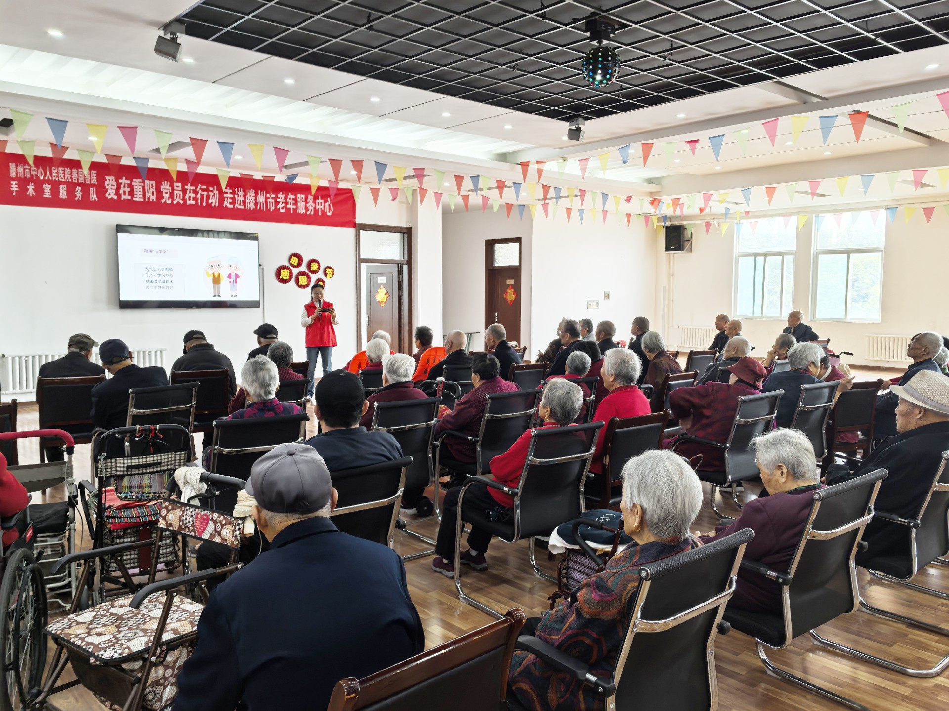 手術室黨支部書記李方姣首先向各位老人送去關懷和祝福,愿他們健康長壽,幸福安康。活動在主持人閆丹親切、溫暖的開場白中,拉開帷幕。