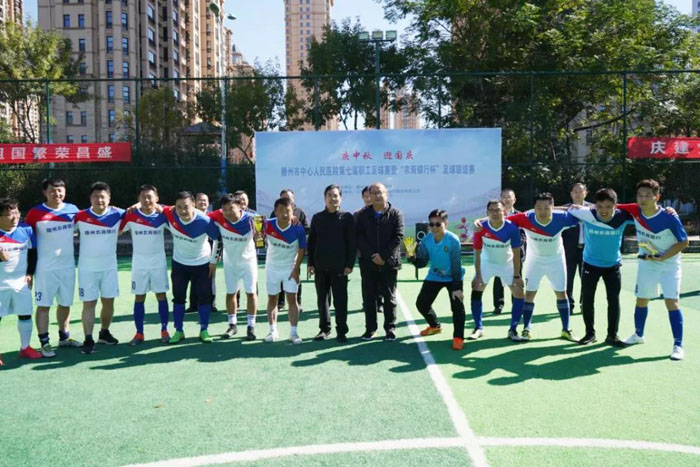 張廣啟、高鵬為6支足球隊(duì)頒發(fā)優(yōu)勝獎(jiǎng)杯。