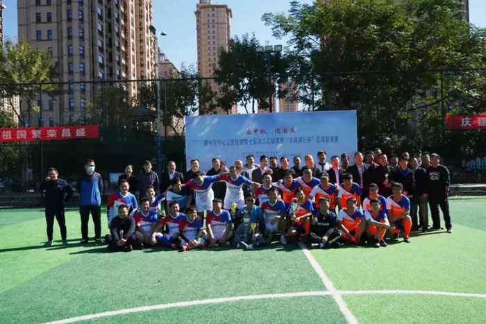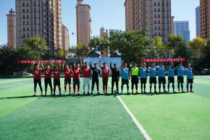頒獎(jiǎng)儀式結(jié)束后,朱紹猛、李鵬共同為善國(guó)善醫(yī)足球隊(duì)--農(nóng)商銀行足球隊(duì)聯(lián)誼比賽開(kāi)球。