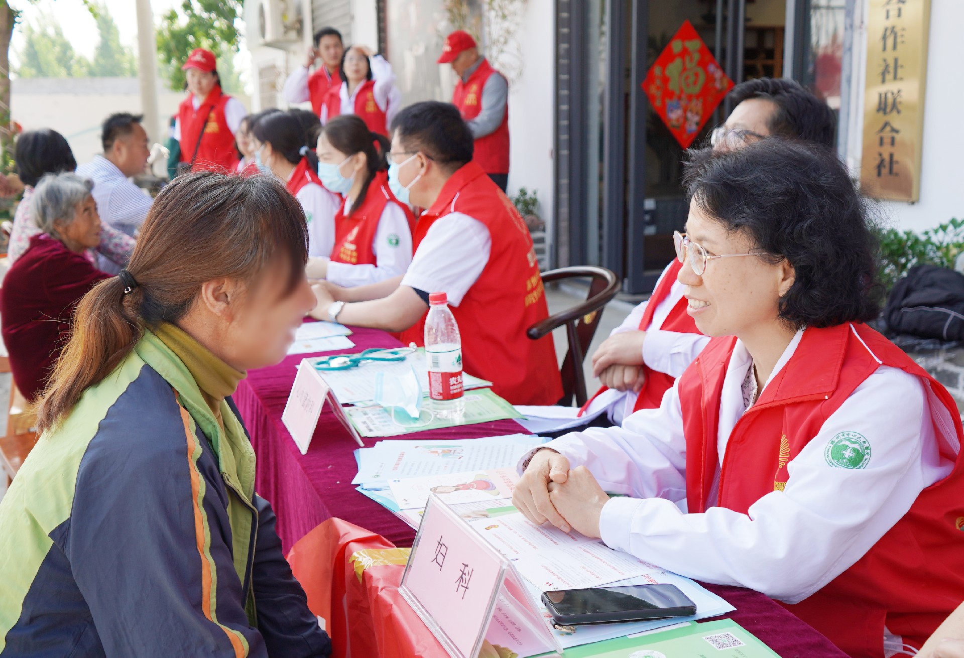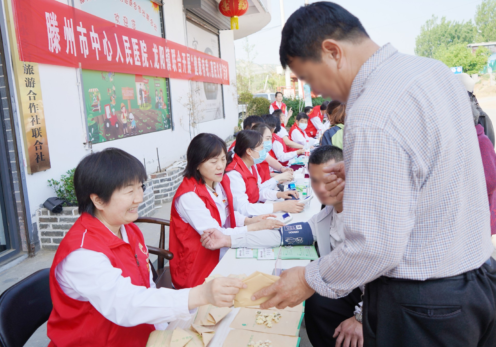 活動現場,來自消化內科、眼科、婦產科、內分泌科、關節運動科、新生兒科等專業的各位專家,認真地為群眾問診、查體,為他們提出合理化治療建議及方案,指導科學用藥,并就健康生活方式、慢性病的預防和治療等進行科普宣傳。同時,醫務人員免費為村民測量血壓、檢測血糖,藥學部專家免費發放常用藥品并提供詳細的用藥咨詢。