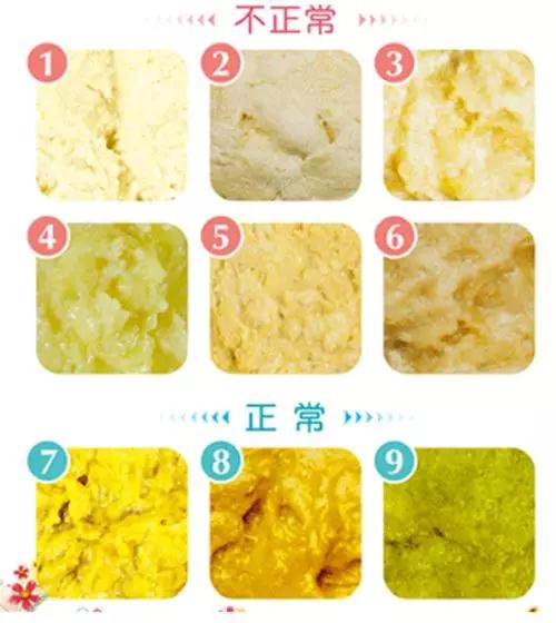 上圖中1-6為不正常的白/灰白色大便,7-9則是正常的嬰兒大便。當發現寶寶排出上圖1-6這種白/灰白色大便時,家長要立即帶寶寶看醫生,排除是否存在先天性膽道閉鎖的問題。因為膽道閉鎖會導致寶寶膽汁中的膽紅素無法進入到寶寶腸道內,導致大便無色素生成,呈現白色或灰白色大便。