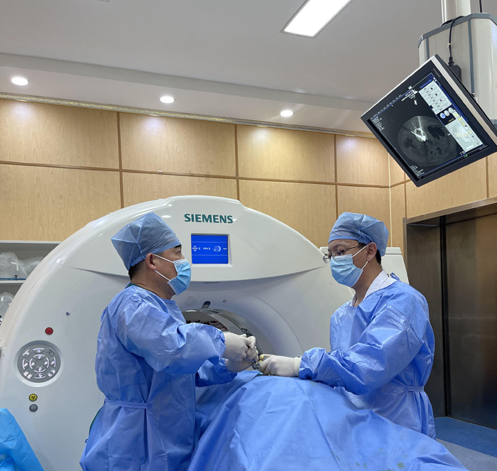 對于骨皮質破壞明顯的骨轉移,單純骨水泥成形術治療后病理性骨折的發生率較高,據報道,如果Mirels評分為9-12分,則病理性骨折的發生率高達33%。為此,團隊開展了CT引導微波消融聯合介入內固定(俗稱鋼筋混凝土技術)治療高骨折風險部位骨轉移的研究。研究發現,采用上述方法,能有效避免病理性骨折的發生。研究結果發表于Journal of Cancer Research and Therapeutics。