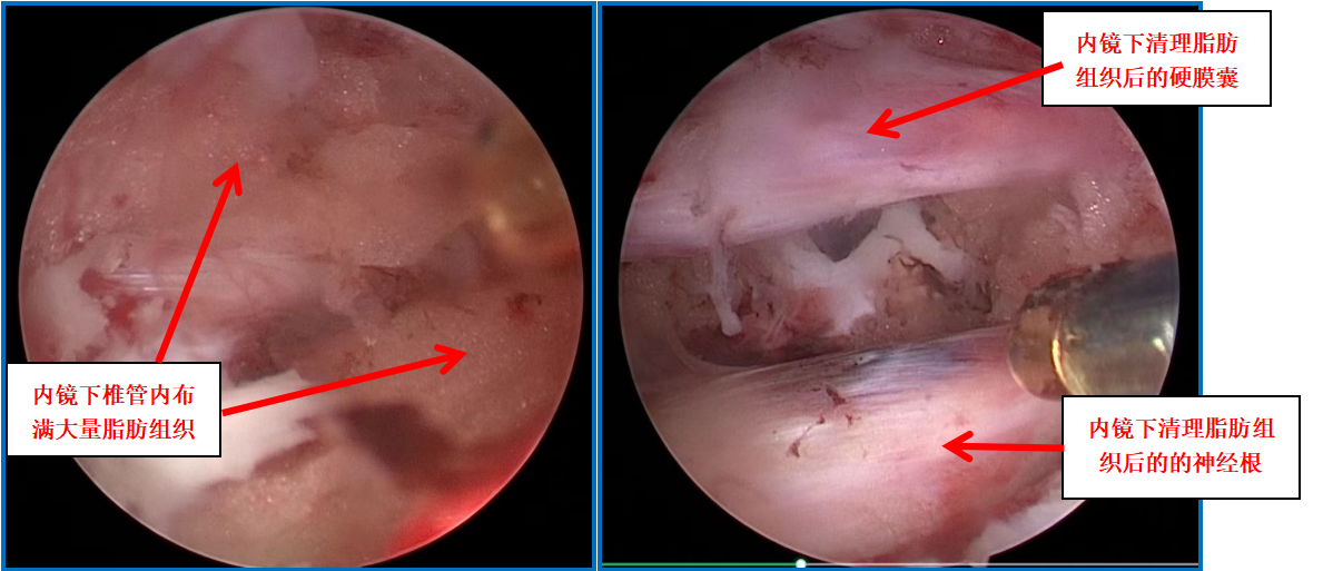 正常人的椎管內,都含有少量的脂肪組織。但該患者的腰椎管內脂肪含量卻異常增多,對神經產生了明顯的壓迫,因而出現相應的神經壓迫癥狀,嚴重影響了工作和生活,需要手術治療。但常規開放手術創傷大,并且患者體型肥胖,對手術暴露及切口愈合都有一定影響。朱中蛟帶領科室團隊經過認真檢查、準備,并與患者溝通后,決定通過UBE(單側雙通道脊柱內鏡技術)手術為患者解除病痛。