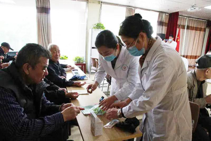 義診現場,專家們為在場的老人進行了身體檢查,包括測量血壓、血糖,心肺聽診,中醫把脈等,并親切地與老人們交流,仔細地詢問老人的身體情況。專家在詳細了解老人的病情后,為老人們制定出適合他們的治療方案,并進行用藥指導,同時講解老年疾病預防和老年護理等醫療常識,為老年人提出合理的飲食、運動等生活指導。中醫專家還進行了中醫健康保健知識的講座。