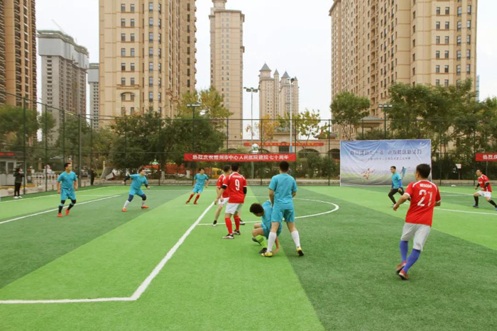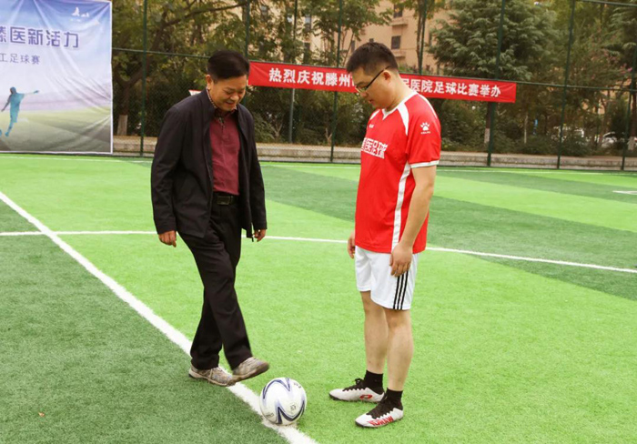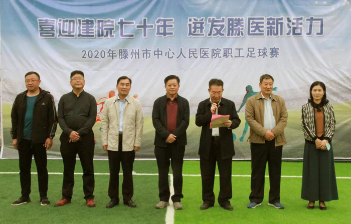 院長楊瓊致開幕辭,并宣布滕州市中心人民醫院成立70周年暨第六屆職工足球賽正式開始!他表示,足球是一項世界性的體育運動,也是最具影響力的體育活動,深受大家的喜愛。參賽隊員一定要注意比賽中的人身安全,文明參賽,規范參賽,發揚更高、更快、更強的奧運精神,賽出水平,賽出風格,積極展現我院職工的團隊精神和健康向上的精神風貌,用優異的比賽共賀建醫院70周年華誕。同時,也希望醫院工會要繼續發揮職工之家的作用,做好堅強的后勤保障;全體裁判員要嚴守規程、公正裁判;全體工作人員忠于職守,樹立安全意識、服務意識、規則意識,共同為足球比賽創造良好的氛圍,確保比賽的順利進行。