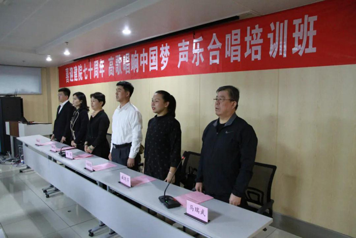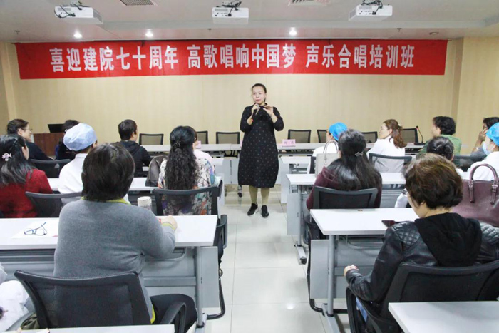 會上,院團委書記崔艷宣讀活動方案。院黨委副書記馬瑞武宣布培訓班正式開始并提出要求,他希望大家要以這次活動契機,不斷陶冶藝術情操,豐富精神文化生活,提高職工的自豪感、幸福感,為醫院增添更加濃厚的文化氛圍;希望合唱團成員發揚團結協作精神,弘揚時代主旋律,共同建設好“合唱團”這個自己的藝術之家,以精彩的演唱向院慶70周年獻禮。