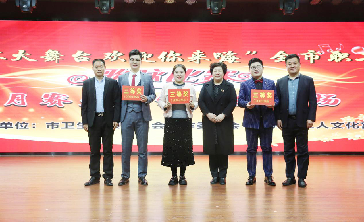 為進一步滿足職工文化需求,展示職工風采,陶冶職工情操,提高職工生活質量,營造良好的文化氛圍,3月9日,滕州市衛生健康局工會聯合市工人文化宮舉辦“職工大舞臺 歡迎你來嗨”衛健系統專場職工歌詠比賽,我院“醫心向黨”合唱團部分成員參加比賽。