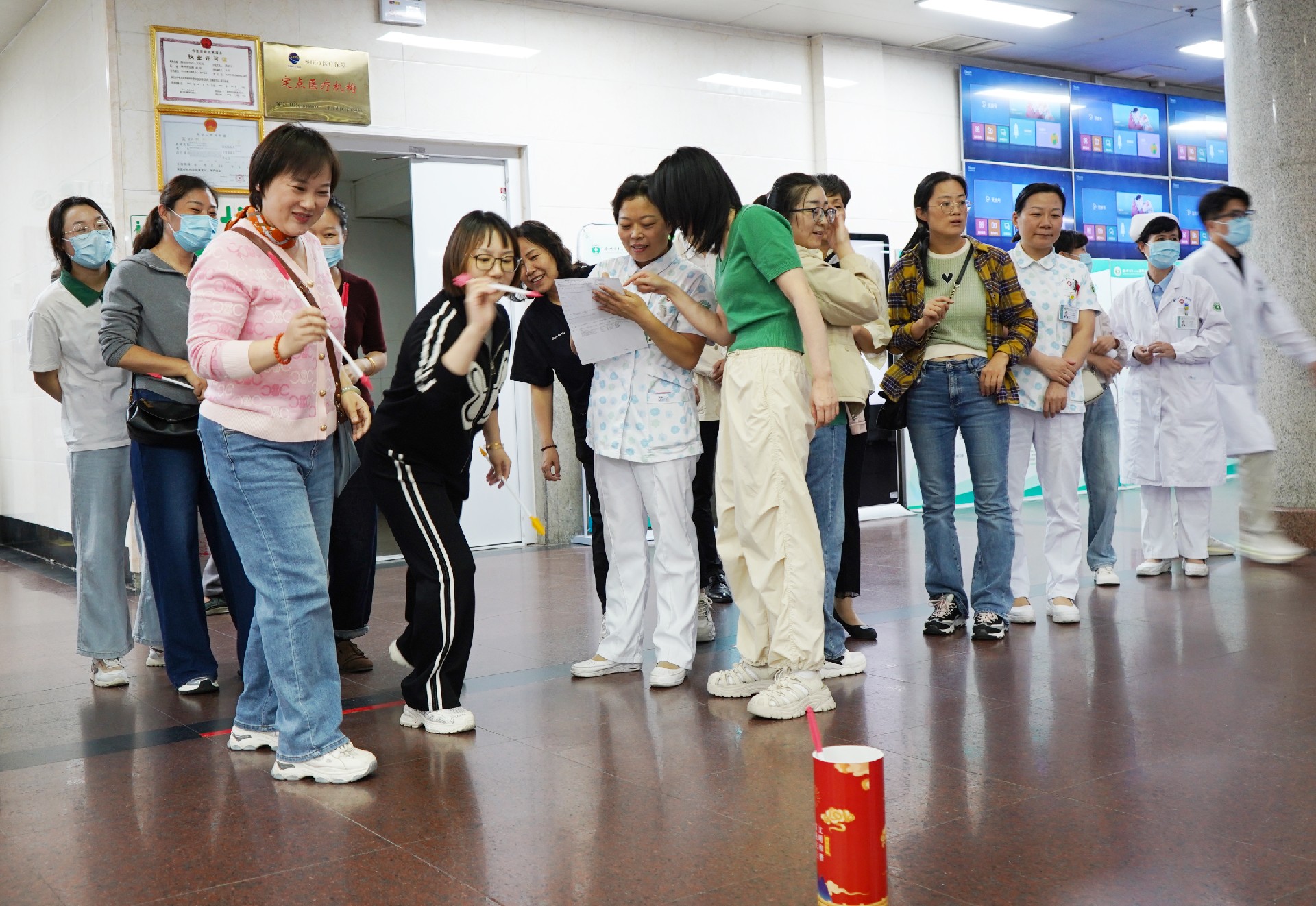 為慶祝新中國(guó)75周年華誕,豐富職工業(yè)余文體生活,展現(xiàn)職工積極向上的精神風(fēng)貌,9月24日下午,我院門(mén)診區(qū)域工會(huì)小組在門(mén)診樓一樓舉辦“禮贊新中國(guó) 建功新時(shí)代”“喜迎國(guó)慶”職工文體活動(dòng)。院黨委委員、黨群工作部主任王維出席活動(dòng)并講話(huà)。黨群部、工會(huì)、門(mén)診區(qū)域各科室負(fù)責(zé)人及門(mén)診區(qū)域醫(yī)務(wù)人員參加活動(dòng)。